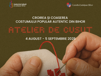 Centrul de Cultură al Județului Bihor invită publicul adult la un atelier autentic de cusut, desfășurat între 4 august și 5 septembrie 2025, de luni până vineri, între orele 11:00 și 13:00, la sediul instituției din str. Moscovei nr. 5, Oradea.